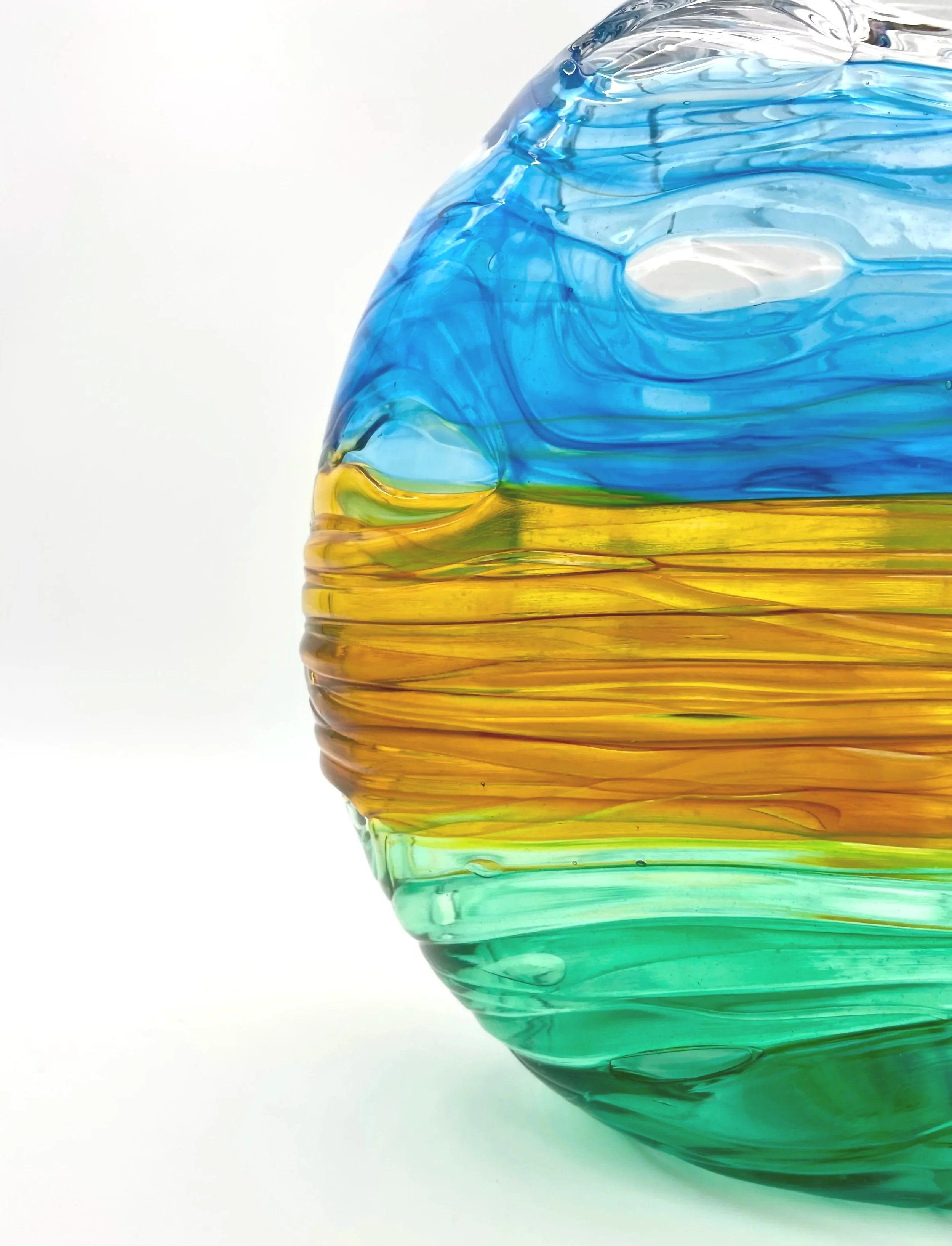 Living in Delta, I often take walks along the dyke surrounding Boundary Bay, where the Pacific Ocean and the Fraser River meet. This is where I find my calm and the inspiration for the Rivers Reach series — the rich colours of the sunset and moon-rise reflecting on the rippling water's surface.